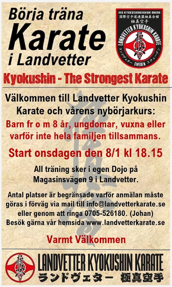 till info@landvetterkarate.se eller genom att ringa 0705-526180. (Johan)